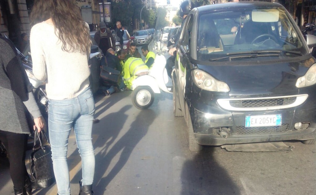 Un altro incidente si è verificato in via Ammiraglio Rizzo. Qui una Fiat Punto si è scontrata con una moto. Uno scooter Liberty. Il motociclista è voltato e con il casco ha sfondato il parabrezza.