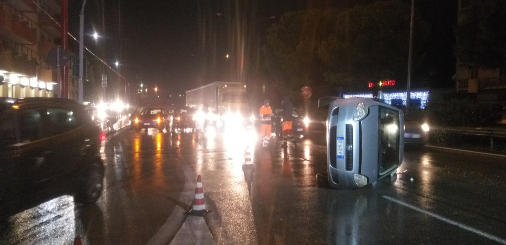 Incidente in viale Regione Siciliana, auto si ribalta su un fianco, traffico in tilt (VIDEO)