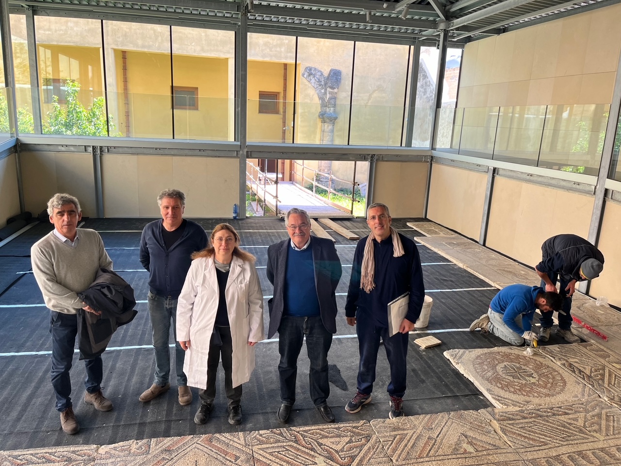 Iniziata la posa del mosaico Galati-De Spuches all’interno del padiglione espositivo, realizzato dall’architetto Paolo Palmeri nell’ex chiostro di San Rocco, che ospiterà il pavimento musivo proveniente da una villa tardo romana scoperta da Giuseppe De Spuches, principe di Galati, in contrada San Nicola, a Carini, nel 1873.