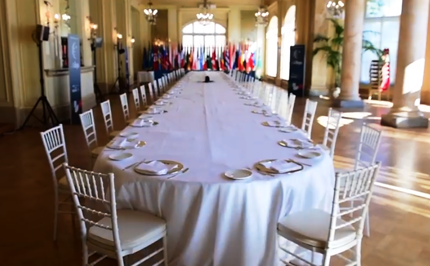 Un menù un po’ più raffinato ma simile a quello del pranzo a buffet offerto a circa mille ospiti oggi quando la conferenza era ancora in stand by.