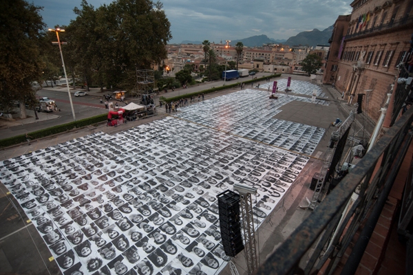 Tremila persone hanno invaso ieri fino a tarda sera Piazza del Parlamento a Palermo, per assistere al concerto per l’integrazione con 42 artisti che si sono esibiti senza alcun ingaggio dal balcone di Palazzo Reale, in occasione della mega istallazione dell’artista francese JR con quattromila volti, di palermitani e non, su manifesti “attaccati” sull’asfalto.