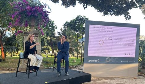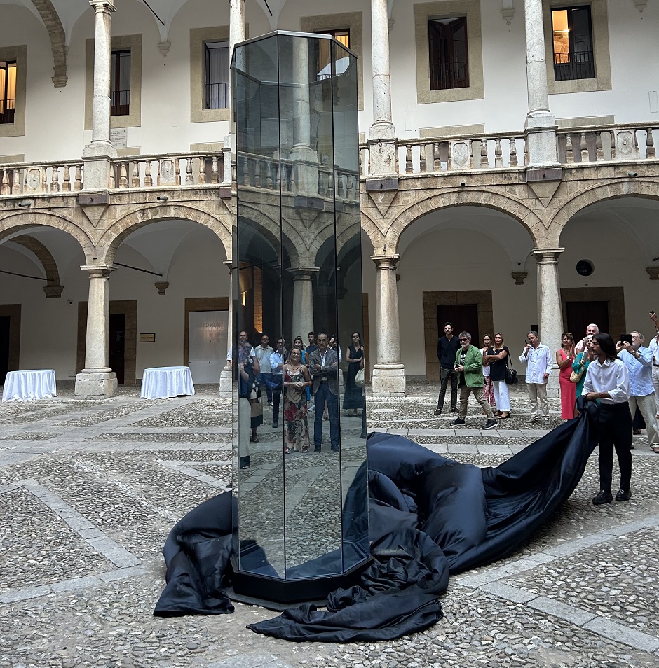 “La natura – ha detto Cicconi – si esprime attraverso codici che l’artista può decriptare e riproporre in scala. Questa installazione è alta quattro metri e i lati hanno una dimensione di 40 centimetri, la sua forma ottagonale richiama l’infinito, nel suo insieme dialoga con la geometria del cortile attraverso lo sviluppo della sezione aurea. Confrontarmi con i secoli di storia che sono racchiusi a Palazzo Reale, mi crea un’emozione che stento a nascondere. Mi sono innamorato di Palermo appena atterrato per la prima volta all’aeroporto, il suo background culturale per me è fonte di ispirazione. Un artista non vive di luce propria, ma assorbe quella circostante”.
