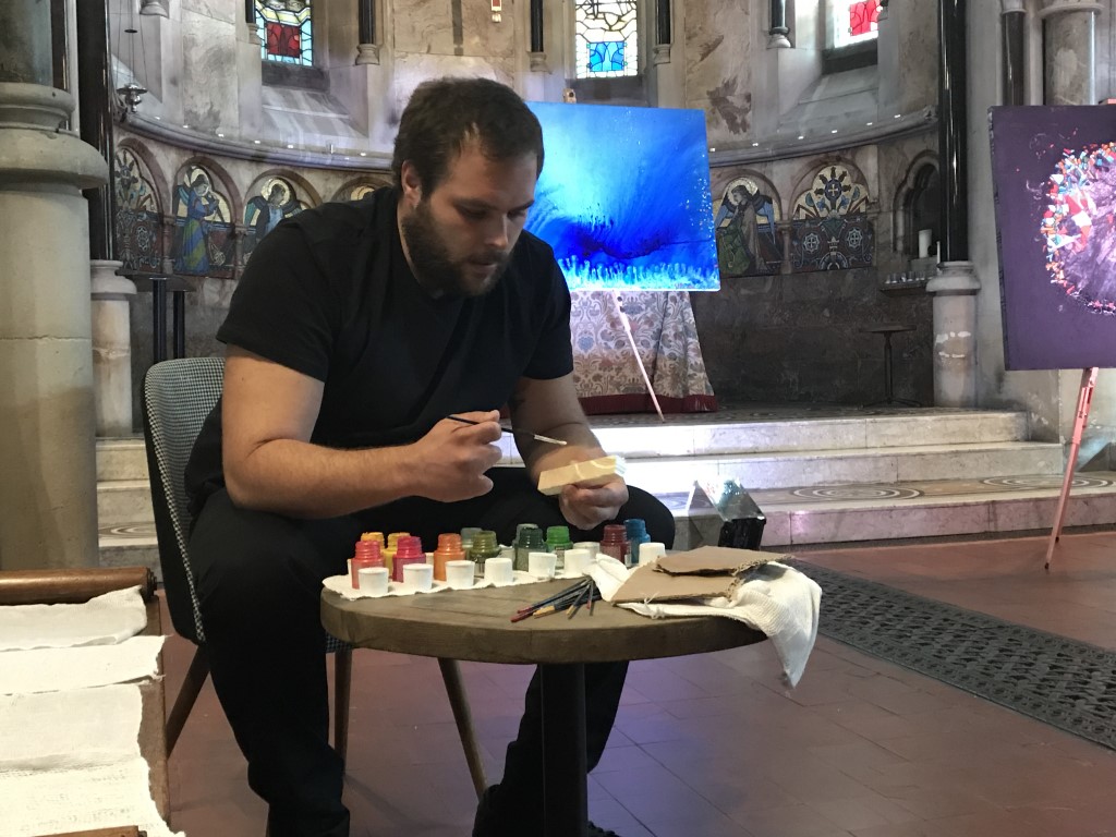 Uno studio, un’indagine su ciò che per lui significa il termine ‘Naturale’ che l’artista vicentino inizia quando cambia studio, durante la pandemia: “E’ un’idea che nasce in lockdown. L’anno scorso mi ero immaginato questo progetto che si chiama ‘Naturale’ e di studiare, di capire un po’ la parola Naturale cosa significava per me, tramite progetti, opere e performance e uno dei capitoli era appunto INTIMA; e Intima era proprio il cambio studio. Nella mostra raccolgo tutti i pezzi del parquet del mio ex studio dove sono cadute gocce di colore dal pennello, dove ho respirato la polvere di colore, dove mi sono arrabbiato, stupito, rasserenato. Ho spedito il parquet del mio studio e alcuni dettagli come la moquette dei miei scalini, gli arazzi su cui dipingevo e li ho mandati tutti a Gratteri”.