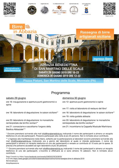 Torna all’Abbazia di San Martino delle Scale l’annuale week-end dedicato al gusto e alle eccellenze locali: la nuova edizione di “Birre in Abbazia” è in programma per sabato 29 e domenica 30 giugno. Per l’occasione saranno allestiti stand e punti di degustazione. L’ingresso è libero.