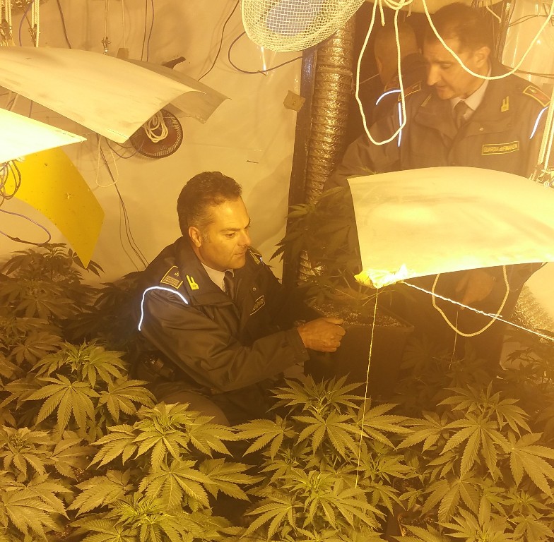 La “centrale di produzione” scoperta, attrezzata come un complesso industriale organizzato, era suddivisa in più magazzini, attigui alla residenza dei due coniugi e trasformati in serre. I militari avevano avuto sentore della presenza della coltivazione già avvicinandosi alla struttura per via del forte e caratteristico odore proveniente dai locali.