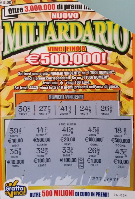 Altri due premi da mille euro ciascuno sono stati vinti, invece, con biglietti sempre gratta e vinci ma della serie ‘nuovo miliardario’ venduti dal bar ricevitoria ‘Rosalba’ di via Ammiraglio Rizzo