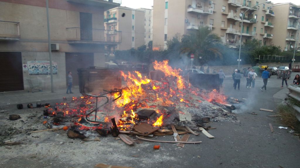 Si preannuncia una lunga notte. Nei giorni scorsi c’erano stati dei roghi appiccati ad altre cataste. Sempre all’ospedale dei Bambini, allo Sperone e a Brancaccio.