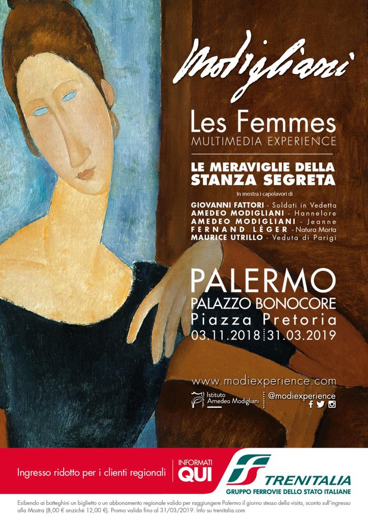 Continua il successo tra il pubblico e i tanti curiosi dell’esposizione multimediale, inaugurata lo scorso 3 novembre a palazzo Bonocore, dedicata al pittore livornese – organizzata da organizzazione Navigare Srl, curata da Alberto D’Atanasio, in collaborazione con l’Istituto Amedeo Modigliani, nell’ambito delle manifestazioni di Palermo Capitale italiana della Cultura 2018 – a cui si aggiungono le opere meravigliose della “stanza segreta”, due della quali attribuibili ad Amedeo Modigliani – Jeanne e Hannelore – e tre opere di amici di Modigliani, Maurice Utrillo, Joseph Fernand Henry Leger, Giovanni Fattori.