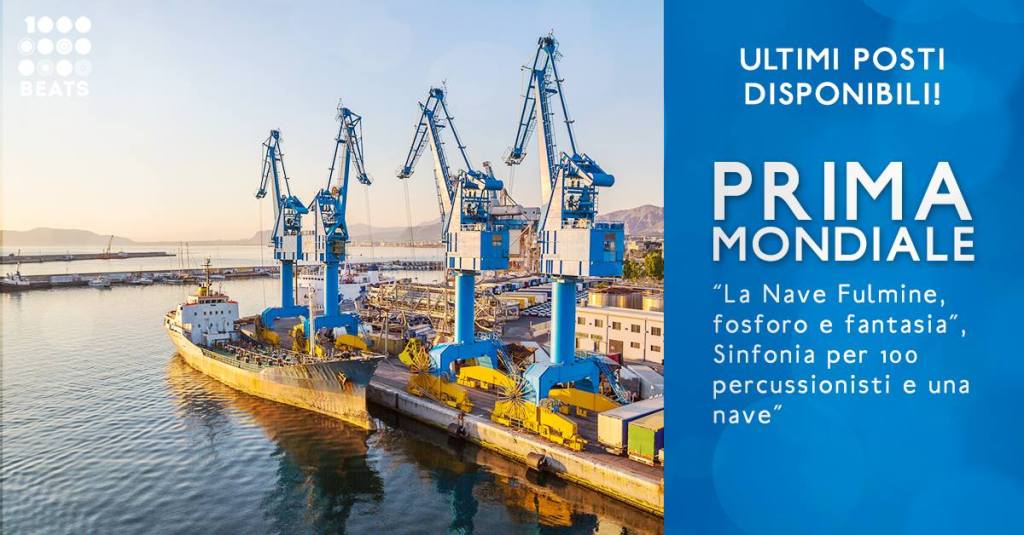 La prima mondiale dal titolo “La Nave Fulmine, fosforo e fantasia” Sinfonia per 100 percussionisti e una nave, organizzata da 1000 BEATS, EUROPEAN DRUM & PERCUSSION FESTIVAL ACADEMY sarà svolta al porto di Palermo, Molo Vittorio Veneto, dalle ore 19 del giorno 30 aprile 2019. Ingresso solo su prenotazione.