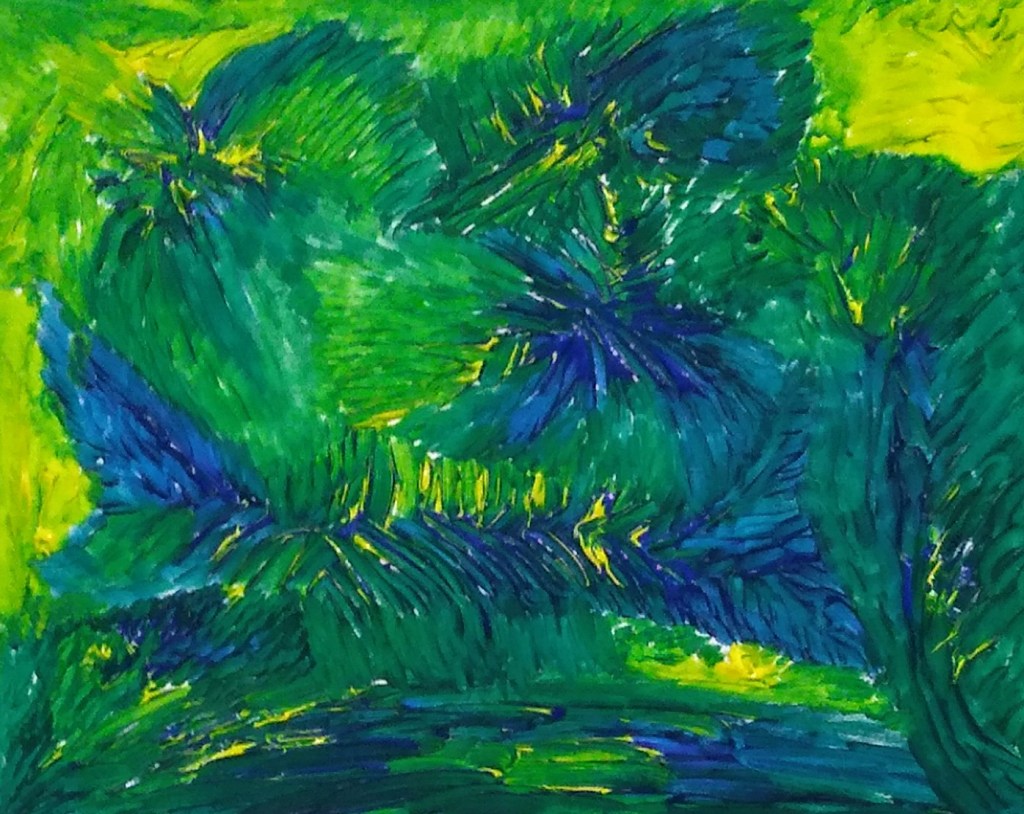 Il maestro con l’azzurro del cielo ci sta dicendo che nel Cielo c’è un Creatore che non permetterà che la sua creatura, “l’uomo”, possa essere sopraffatto da un male oscuro; il verde, mischiato con l’azzurro, ci ricorda, tramite l’arte dell’autore, che il colore della speranza è certa, perché basata sulla fede e come umanità, ci farà rialzare per poterci abbracciare e vivere in un mondo di amore”.