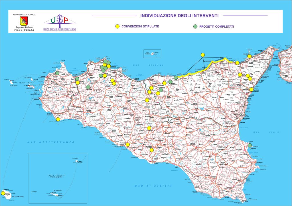 Si tratta, in particolare, di sei strade provinciali – due del Trapanese e quattro in provincia di Palermo – del Centro comunale di raccolta rifiuti ad Altofonte, della riqualificazione di una piazza a Camporeale, dei progetti per Castello Utveggio e Palazzo Orleans. A ciò si aggiunge il consolidamento di sei centri abitati.