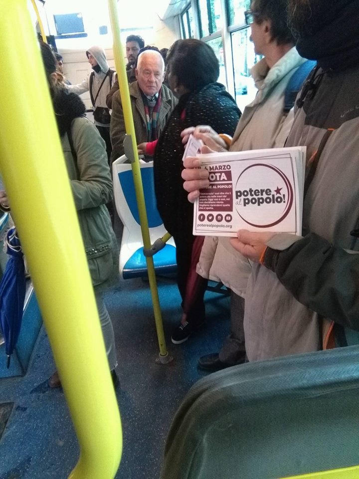 Un gruppo di attivisti di “Potere al popolo” è salita sui mezzi pubblici oggetto delle ronde di Forza Nuova per la presunta sicurezza.