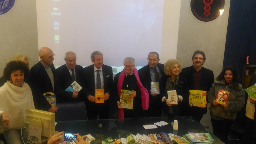 Hanno ricevuto in consegna i libri il Commissario del Policlinico, Fabrizio De Nicola, e il Direttore della Pediatria dell’Ospedale Cervello, Nicola Cassata. Sono intervenuti suor Fernanda Di Monte delle Edizioni Paoline, Andrea Monteleone e Cetti Moscatt, rispettivamente Presidente provinciale e regionale Avo, il professore Giovanni Corsello, Direttore del Dipartimento Materno Infantile del Policlinico.