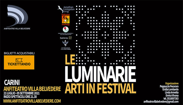 Il festival delle Arti “Le Luminarie” si svolgerà a partire dal 21 luglio al 5 settembre sempre presso l’Anfiteatro di Villa Belvedere, location suggestiva che si affaccia sul golfo di Carini.