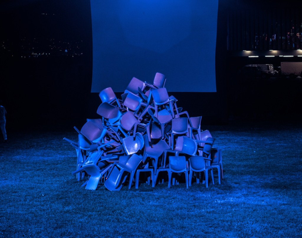La “sedia”, da oggetto simbolico della condizione del pubblico, diventa strumento creativo per il coinvolgimento del pubblico. Gli attori di Stalker Teatro coinvolgono il pubblico chiamandolo a partecipare attivamente all’azione scenica. Centinaia di sedie per un evento interattivo dal forte impatto visivo e musicale che unisce arte contemporanea e performance dal vivo. Nato a seguito della pandemia, il progetto “Le sedie” si nutre del desiderio, allora sentito in modo struggente, di stare e costruire insieme. La drammaturgia trae spunto dall’omonimo testo di Eugène Ionesco e da “Le città invisibili” di Italo Calvino e, attraverso il gioco collettivo dello spostare creativamente sedie nello spazio, tenta di rispondere a quel desiderio per una performance partecipativa che mette al centro la collaborazione e la comunità. Lo spazio teatrale diventa un luogo di creazione fantastica in cui ognuno diventa protagonista di un’avventura collettiva. Un esperimento poetico e partecipativo, che riflette sul ruolo dell’arte e sul teatro come spazio vivo, in continuo dialogo con la realtà e le sue trasformazioni.