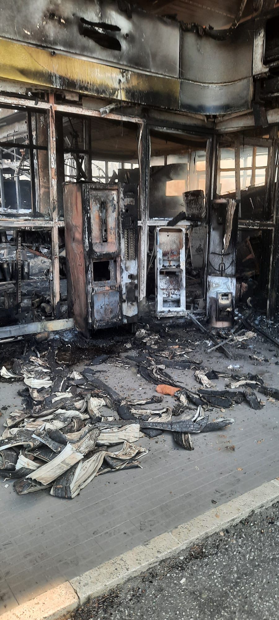 Il rogo ha distrutto l’area ristoro e l’intervento dei vigili del fuoco ha consentito di scongiurare il peggio dove si trovano le pompe di rifornimento del carburante.