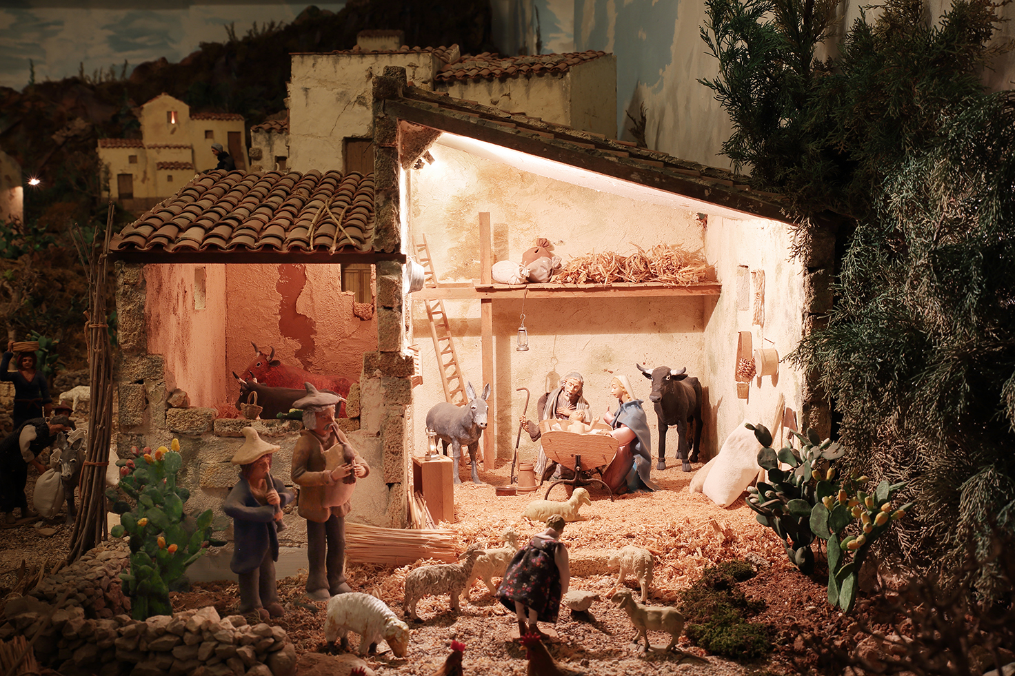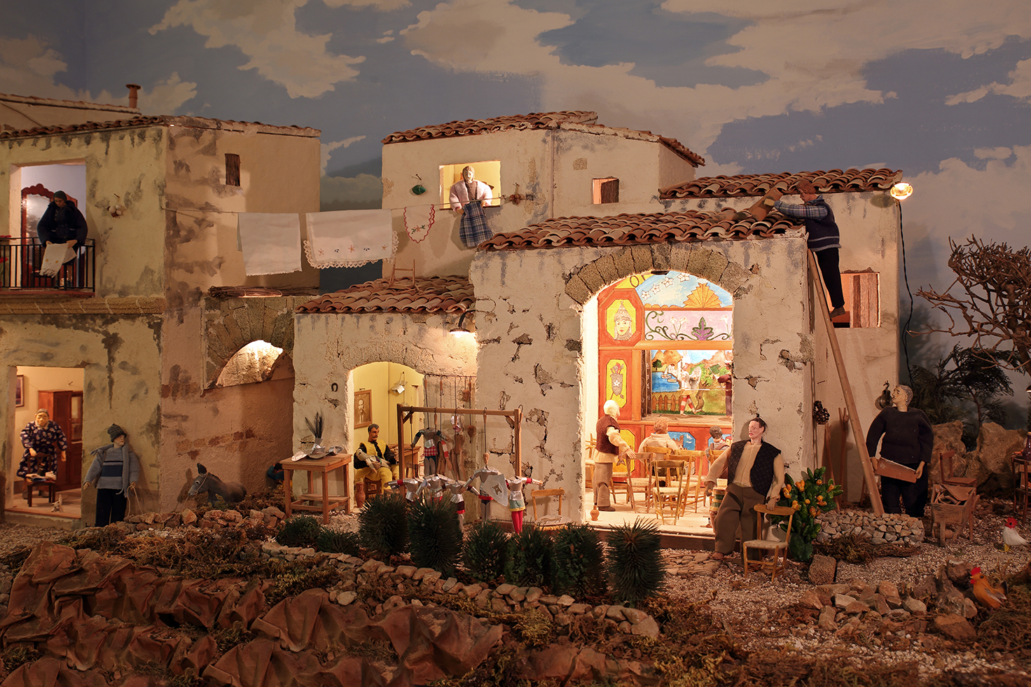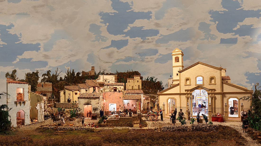 E’ un’esposizione, in miniatura, di grande rilevanza storico-culturale e antropologica nella quale la magica atmosfera del Natale è in perfetta armonia con la rappresentazione dei mestieri, delle arti e delle tradizioni siciliane, tipiche della civiltà contadina, pastorizia e artigianale del secondo dopoguerra, oggi in gran parte desuete. E’ realizzata con materiali reali, tufo, pietra, ceramica, legno e ferro. Frutto di una ricerca meticolosa e da uno studio approfondito della storia della tradizione siciliana. I personaggi riproducono i movimenti tipici dei diversi mestieri che si rappresentano. Dal fabbro al falegname, dal calzolaio alla ricamatrice e la filatrice, la senia, il mulino, il vasaio, i muratori e il macinatore di grano. E ancora i carretti siciliani, il ricottaio, il forno, il tornio, la lavandaia, e lo spettacolo dei pupi siciliani.