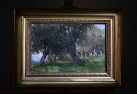 Il dipinto “Ulivi saraceni” rappresenta un punto di contatto tra due linguaggi pittorici. Da un lato il Vedutismo siciliano, dall’altro l’Impressionismo francese.