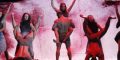 Un Macbeth tragico, dominato da un enorme velo rosso sangue – sangue di delitti, sangue di parto, sangue di guerra e di morti – popolato da streghe che si fanno continuamente ingravidare per partorire altre streghe, circondato da una natura ostile e pericolosa rappresentata da una foresta di fichi d’India.