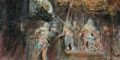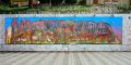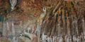 Il murale, composto da cinque grandi pannelli autoportanti e adagiati sulla roccia in altorilievo (12,8 metri x 2,7 metri l’uno), comprende presenze antropomorfe e zoomorfe, i riti e il susseguirsi delle stagioni, con chiari riferimenti alla storia che si mescola all’arte contemporanea. I pannelli ricordano grotte abitate da fantasmi, da uomini e donne di epoche indefinite.