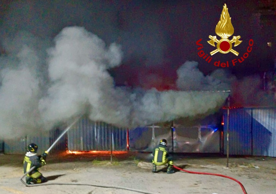 I vigili del fuoco sono intervenuti in vicolo Chiazzese a due passi da via Conte Federico per spegnere l’incendio che ha avvolto i magazzini in lamiera utilizzati come ripostiglio di materiali vari.