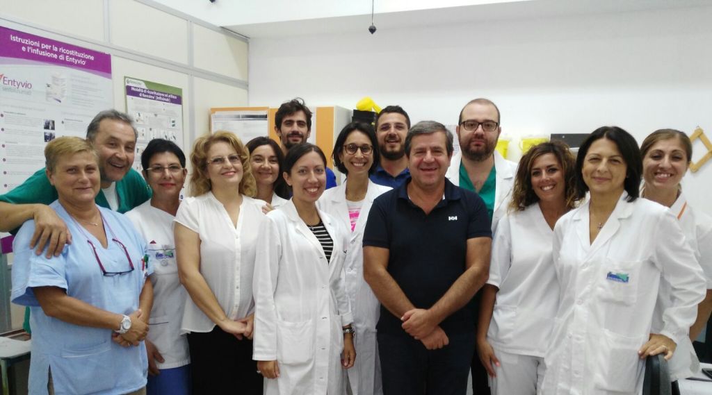 “Ci occupiamo – sottolinea il dott. Ambrogio Orlando – di circa 4500 pazienti all’ anno affetti da queste malattie disabilitanti, e cerchiamo di offrire loro assistenza a 360 gradi. Cerchiamo inoltre di portare avanti studi scientifici volti a migliorare la gestione o il trattamento della malattia di Crohn e della Colite Ulcerosa, offrendo ai nostri pazienti farmaci innovativi visto che partecipiamo a 12 sperimentazioni cliniche (trials) internazionali sulle nuove molecole che potrebbero in futuro portare notevole beneficio ai pazienti affetti da queste patologie. Proprio in questi giorni dovremmo avere nuovamente la disponibilità del promettente farmaco “Mongersen” nell’ambito di uno studio di fase III in pazienti affetti da Malattia di Crohn, capofila l’Università di Roma Tor Vergata e nel quale siamo partner scientifico. Già nel 2013 e 2014 avevamo utilizzato questo farmaco nell’ambito di uno studio di fase II poi pubblicato sulla prestigiosa rivista internazionale New England Journal of Medicine nel 2015. Ma in altri studi internazionali abbiamo disponibili altre molecole per il trattamento sia della Malattia di Crohn che della colite Ulcerosa (Tofactinib, Apremilast ecc). Tali traguardi non sarebbero mai raggiungibili senza l’indispensabile supporto e la professionalità del personale medico, infermieristico, della psicologa, dei data manager e del personale ausiliario, che rappresentano il vero motore della nostra attività ambulatoriale, e che rappresentano un punto di riferimento anche dal punto di vista umano per tutti i nostri pazienti”.