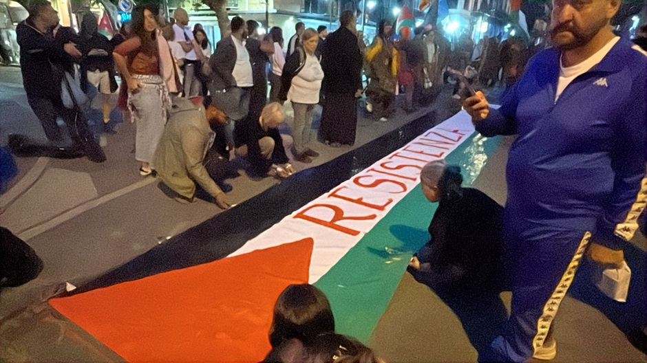 Manifestazione Propal questa sera a Palermo. Circa 500 persone si sono radunate in piazza Sant’Antonino nei pressi della Stazione centrale e poi un corteo si recheranno verso i cancelli dell’industria Leonardo per protestare contro il riarmo. Prima di partire hanno realizzato una bandiera della Palestina con la scritta Resistenza.