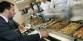Il ministro ha mangiato un paninetto con panelle, pasta con le sarde, pesce spada e cannolicchio alla ricotta. Ha bevuto aranciata.