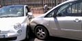 Lo scontro tra una Fiat Cinquecento, una Toyota Corolla grigia, una Peugeot 107 nera e una Smart nera – e un autocarro.