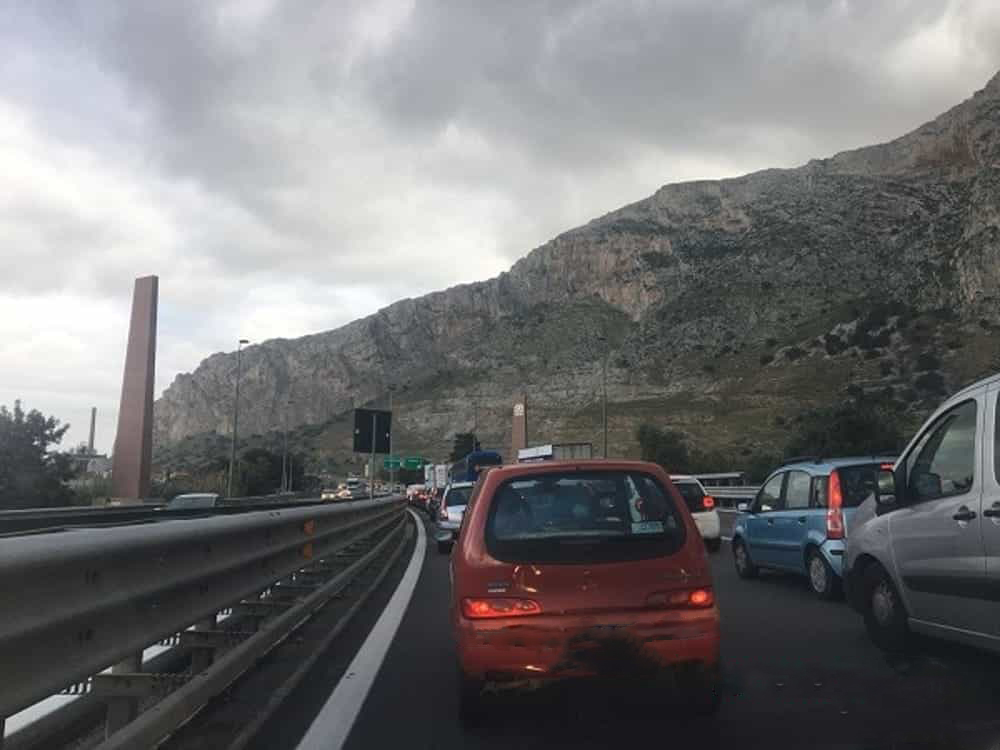 Il traffico è andato a rilento. Le auto sono rimaste coinvolte in un tamponamento a catena dopo lo svincolo di Capaci.