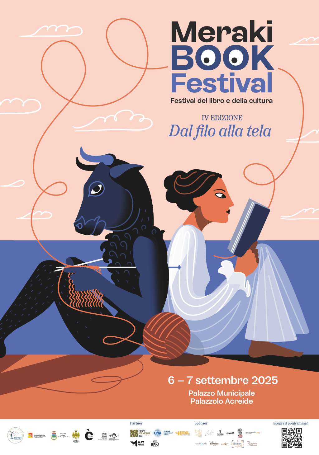 È ormai tutto pronto per la IV edizione del Meraki Book Festival – Festival del libro e della cultura di Palazzolo Acreide, che si svolgerà il 6 e il 7 settembre 2025, presso il Palazzo Municipale di Palazzolo Acreide. Il titolo di questa edizione è Dal filo alla tela, ispirato al mito e alle sue molteplici declinazioni narrative: dal filo di Arianna alla tela di Penelope, ogni filo diventa simbolo di attesa, di astuzia, di costruzione e di orientamento, dando vita a un intreccio, che non è altro che il cuore di ogni storia e di ogni racconto.