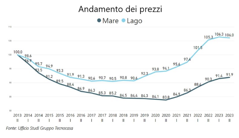 Il mercato immobiliare delle località di mare e lago, nell’analisi dell’ufficio sudi gruppo Tecnocasa, ha evidenziato quindi una generale stabilità dei valori. Dopo il boom degli acquisti, successivo alla pandemia, il mercato si sta avviando verso una normalizzazione tanto che, nel 2023, le compravendite di casa vacanza si sono stabilizzate rispetto al 2022. Sul totale delle compravendite realizzate dalle nostre agenzie esse rappresentano il 7,1%.
