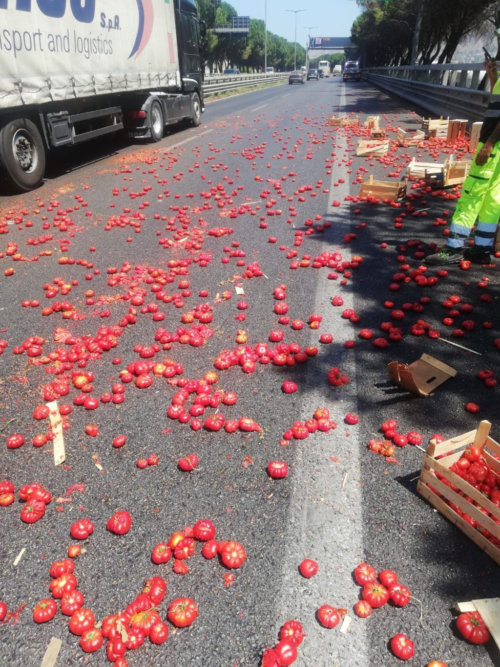 Si sarebbe aperta una delle sponde del camion e in pochi istanti l’autostrada è stata invasa da una distesa di pomodori e cassette di legno. E’ successo intorno alle 15 all’ingresso dell’A19, nel primo tratto in uscita dalla città della Palermo-Catania, all’altezza del km 0+600. L’imprevisto ha causato lunghe code e rallentamenti che hanno reso necessario l’intervento delle pattuglie della polizia stradale di Buonfornello per regolare la circolazione.