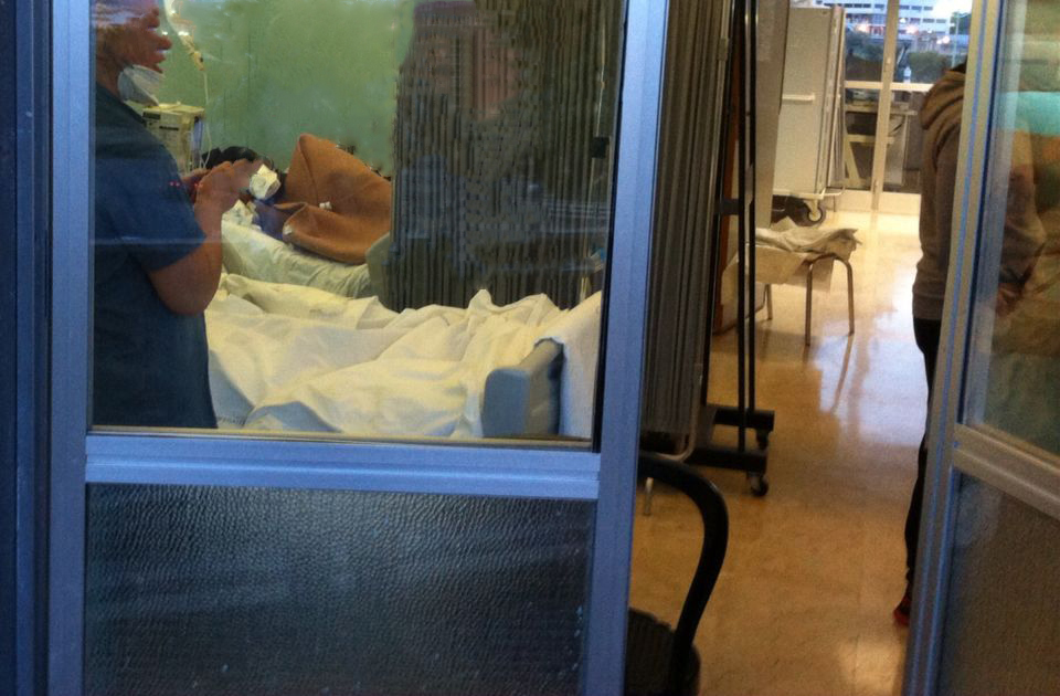 Il giovane ricoverato indossa una mascherina e lo stesso devono fare anche i pazienti che stanno nella stanza e i parenti dei familiari che vengono a trovare i malati ricoverati.