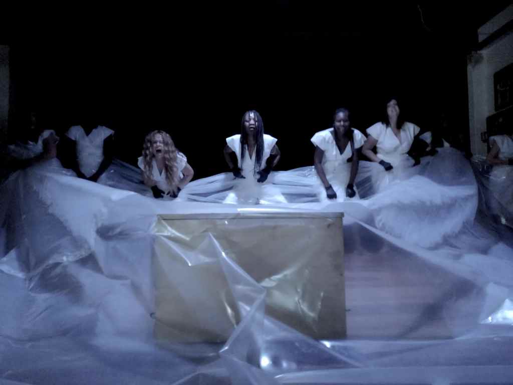 Investighiamo la progressiva disumanizzazione della nostra società. Analizziamo questo processo di trasformazione mettendolo in relazione con il concetto di santità. Il dialogo-conflitto è il fulcro dello spettacolo: santo vs umano; umano vs bestia; luce vs buio. La nostra idea è continuare la ricerca all’interno di un percorso laboratoriale, facendo crescere il progetto di una compagnia sempre più multietnica. Il grande limite è non avere una sede dove lavorare. Ma il nostro vuole essere un laboratorio permanente”.