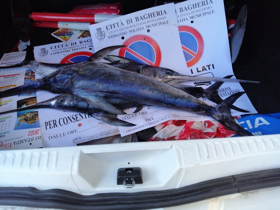 Nel corso dei controlli a una pescheria i vigili urbani hanno sequestrato alcuni esemplari di pesce spada sotto misura. I controlli dei veterinari dell’Asp hanno accertato che il pesce era in cattivo stato di conservazione ed è stato distrutto da una ditta specializzata.