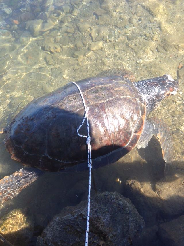 L’hanno trovata in mare che boccheggiava. Stava male, forse ferita. I bagnanti nel lungomare di Casteldaccia in provincia di Palermo hanno cercato in tutti i modi di salvarla.