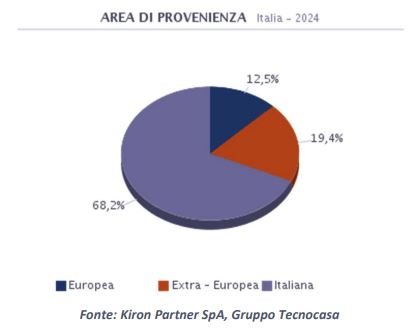 In Italia il 68,2% dei mutui è stato erogato a persone di origine italiana, ma stanno aumentando le percentuali degli stranieri: attualmente quasi il 12,5% è rappresentato da cittadini europei, mentre il 19,4% è rappresentato da immigrati extra-europei. Le nazionalità più rappresentate sono quelle rumena, albanese e moldava, mentre la maggior parte dei non europei proviene dall’Asia, seguiti a brevissima distanza dai latinoamericani e dagli africani.