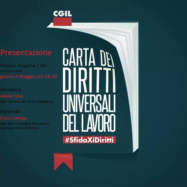 Domani la Cgil presenta la “Carta dei diritti universali del lavoro” a Bagheria, alle forze politiche e sociali del territorio, alle associazioni sindacali di volontariato, ai movimenti ambientalisti, alle amministrazioni comunali del distretto. L’iniziativa, organizzata dalla Cgil di Bagheria, si tiene alle 16.30 a Palazzo Aragona – Cutò, in via Consolare.