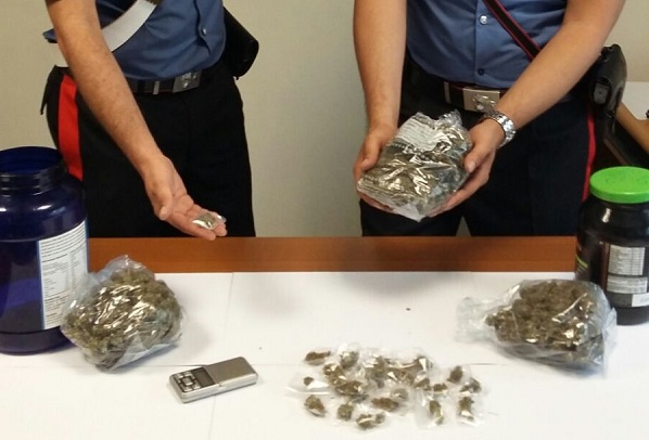 Mossa azzeccata, perché ben occultato, all’interno di alcuni barattoli sistemati in un mobile del locale lavanderia, tra i detersivi, erano celati ben 295 grammi circa di sostanza stupefacente del tipo marijuana, 28 dosi già confezionate della medesima sostanza da un grammo l’una, nonché un bilancino di precisione e materiale per il confezionamento.