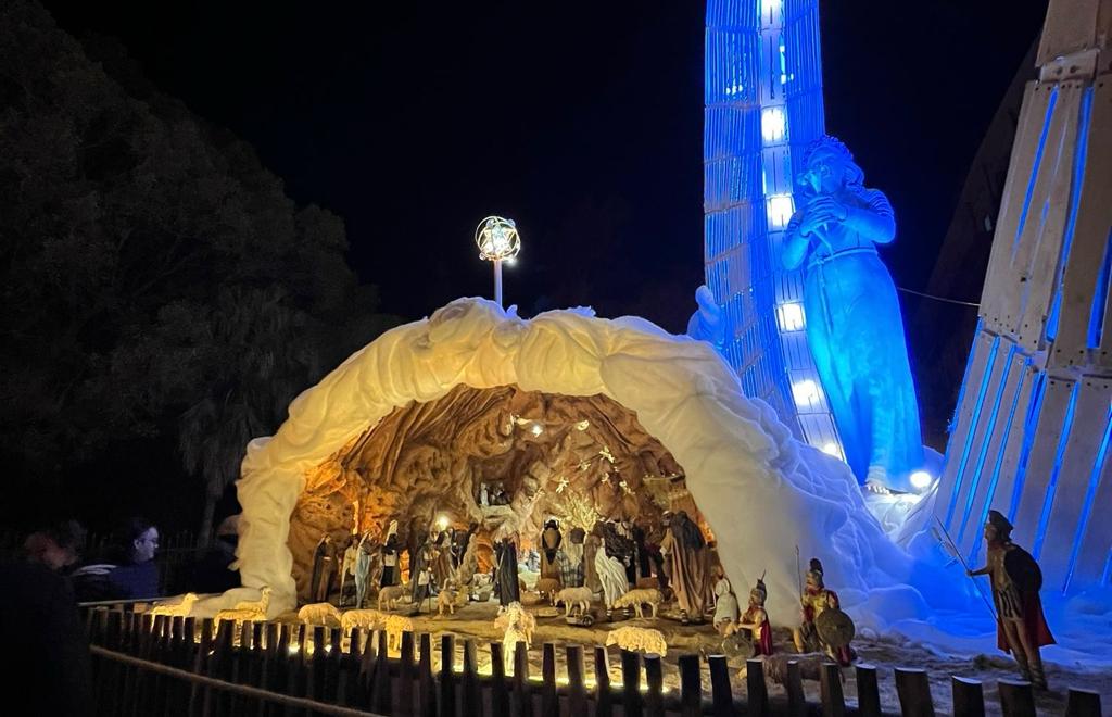 Inaugurato lo scorso 7 dicembre, alla presenza del primo cittadino Roberto Lagalla, dell’assessore alla cultura Pietro Cannella e del responsabile Gaspare Simeti, la natività del Messia è stata sviluppata per mezzo di un collegamento tra il Festino di Santa Rosalia e le celebrazioni natalizie, grazie al quale il “Carro Luna” 2023 , nel pianale della parte inferiore, diventa scenario della nascita di Gesù, le nuvole diventano rifugio, come la grotta di Monte Pellegrino per la santuzza, accogliendo al suo interno la sacra famiglia e tutte le scene legate alla natività.
