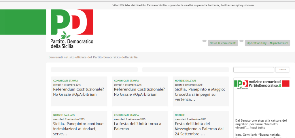 Nel giorno dell’ultimo blitz del premier Matteo Renzi in Sicilia, in particolar modo a Palermo, il sito del Pd siciliano finisce sotto attacco.