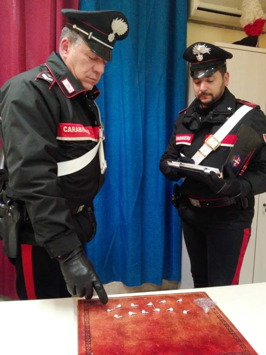 Nel corso della perquisizione i militari hanno rinvenuto nascosti indosso, 12 involucri di cocaina, del peso complessivo di 3 grammi circa.