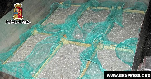 Durante le fasi dell’accertamento gli agenti, cogliendo nei due soggetti uno stato di agitazione ed insofferenza, hanno deciso di estendere il controllo all’autovettura. In tale maniera sono state scoperte nel cofano diverse cassette di pesce, del tipo novellame di sarda.