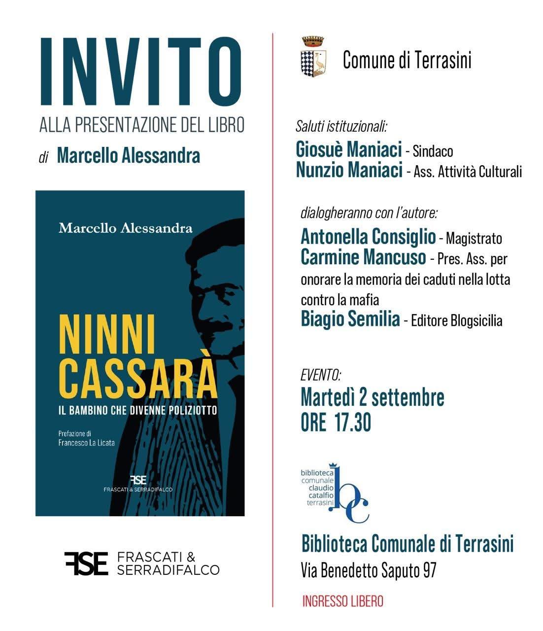 Di fronte alla platea della Biblioteca Comunale di Terrasini, nel tardo pomeriggio di martedì 2 settembre, si respirava un silenzio composto ma carico di emozione. Il Comune e l’assessorato alle attività culturali, rappresentati dal sindaco Giosuè Maniaci e dall’assessore Nunzio Maniaci, hanno voluto aprire le porte della sala per ospitare la presentazione del libro “Ninni Cassarà. Il bambino che divenne poliziotto” (Frascati & Serradifalco, 2025) dello psichiatra e scrittore Marcello Alessandra. L’evento, a cui ha partecipato anche BlogSicilia con l’editore Biagio Semilia, è stato l’occasione per ripercorrere la figura del vicequestore ucciso dalla mafia nel 1985 e per riflettere sulla trasmissione della memoria alle giovani generazioni.
