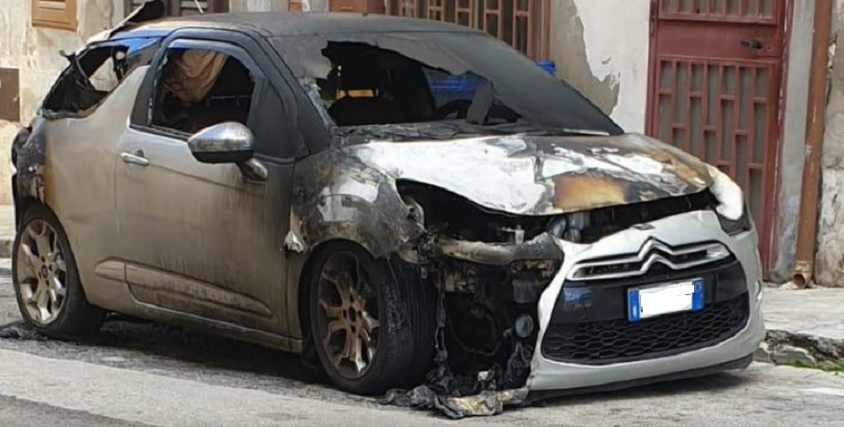 Notte di incendi tra Cinisi e Carini. Auto in fiamme nella notte a Cinisi. Il fuoco ha seriamente danneggiato una Citroen ds 3 parcheggiata nella parte alta di via Faro Pizzoli.