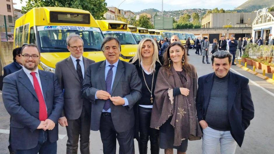 Questa mattina, il sindaco Leoluca Orlando, insieme agli assessori alla Scuola e alla Mobilità, Barbara Evola e Giusto Catania, al presidente di Amat, Antonio Gristina e al consigliere comunale Orazio La Corte, ha inaugurato la nuova flotta di Scuolabus dell’azienda palermitana di trasporto pubblico che è costituita da 13 veicoli full-optionals che potrà ospitare a bordo da 32 a 45 posti bambini, tutti con sedili adeguati per l’età dei piccoli fruitori.