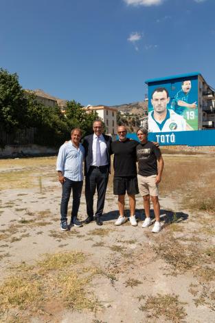 È stata posata questa mattina la prima pietra del futuro impianto sportivo che sorgerà nell’area antistante il murales dedicato a Totò Schillaci, nel quartiere Cep di Palermo.