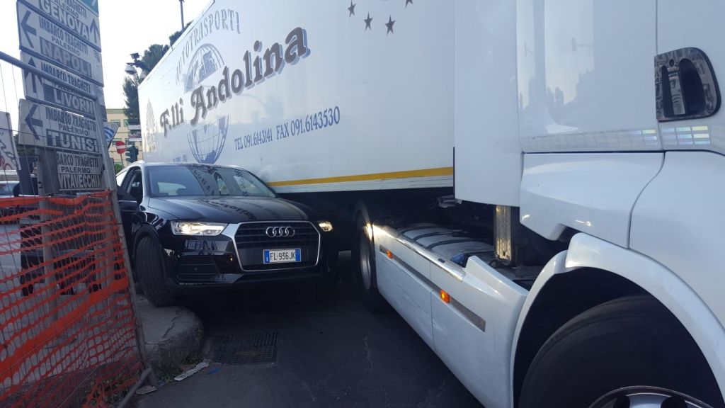 Nuovo incidente in via Crispi a Palermo. Nella corsia in direzione di piazza Giachery un’Audi è finita sotto un Tir. Per fortuna solo danni ai mezzi.
