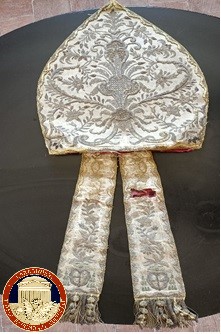 I carabinieri del nucleo tutela del patrimonio culturale hanno ritrovato alcuni oggetti sacri molto preziosi rubati alla nel 2023 dalla chiesa di Sant’Antonio Abate di Noto. Si tratta di una mitria vescovile bicuspidata di colore avorio, databile XVIII secolo, realizzata in seta e filati in oro zecchino e argento, con motivi fitomorfi e ramages.